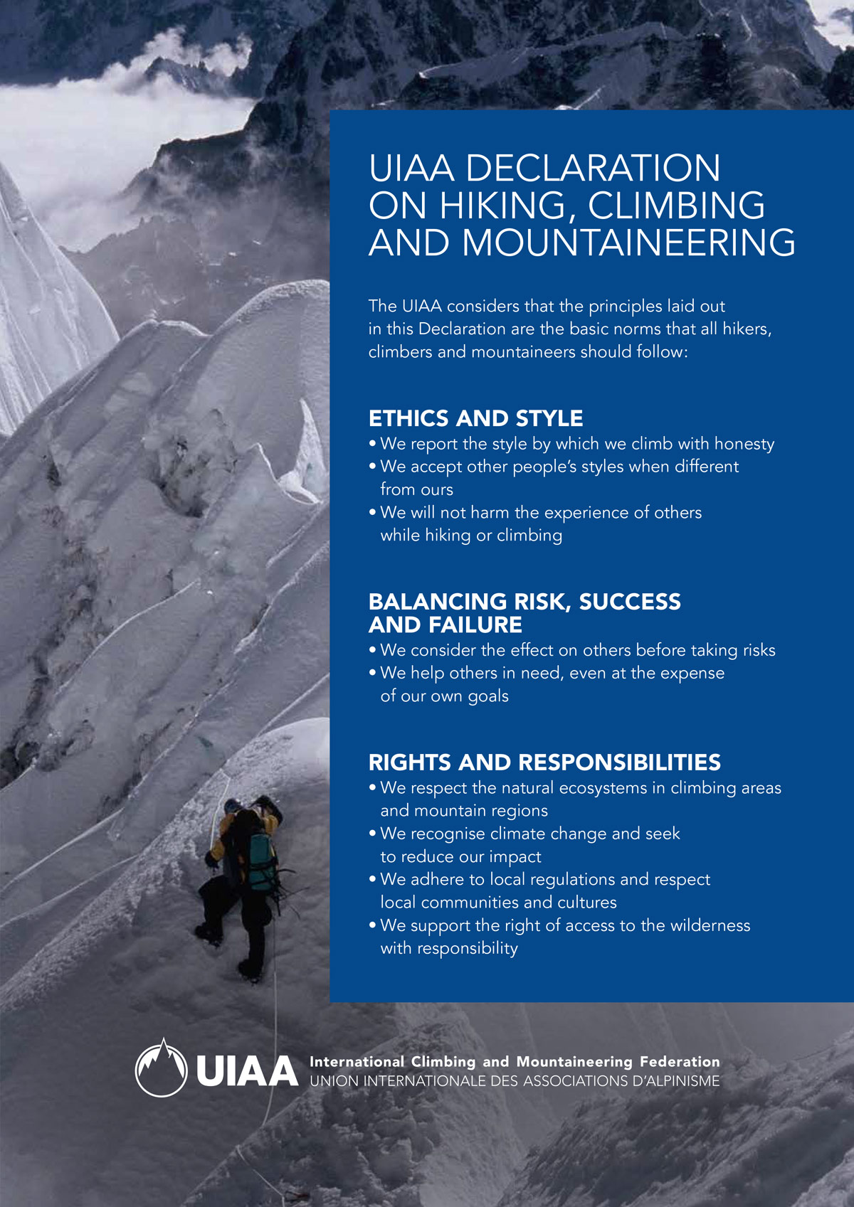 It is hoped that this Declaration will contribute to the foundation that binds mountaineers together across the world.