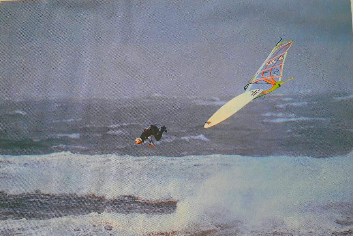 CK: “Well, yeah, Fuerte came along because all the all the guys that were sailing with me went on holiday at Lanzarote every year to Costa Teguise. I never went because I was too young, but I always thought about going. When I was old enough and could afford it, I saw Fuerteventura had better waves than Lanzarote and a lot more beaches, so that really interested me. And then I started seeing the photographs in the mags of Gary Gibson, Farrel O’Shea and Mark Moore, with the Turquoise water and the white sand and I knew that Lanzarote didn’t really have beaches like that! The white Sahara sand and that water colour tempted me to head to Fuerteventura and check it out.
