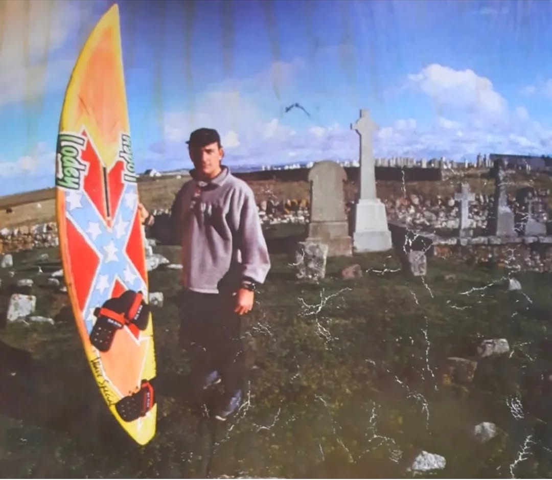 Early on, when I was going to Tiree I was with Lodey, and I had the idea to put the Confederate rebel flag on the bottom of my board. Jason Prior was always one of my heroes, so I thought that would be something different. And it’s kind of stuck. So, then I used it behind my name on the bar. People used to send me all Dukes of Hazzard stuff to go on the walls of the bar. I used to put all the windsurf magazines on the counter and do a daily surf report.