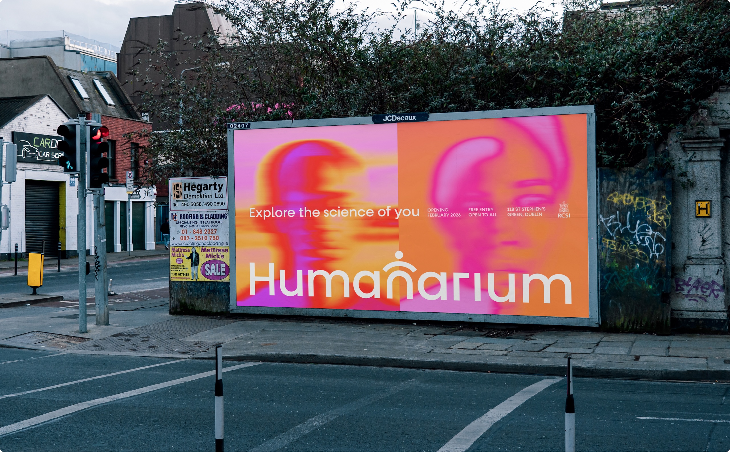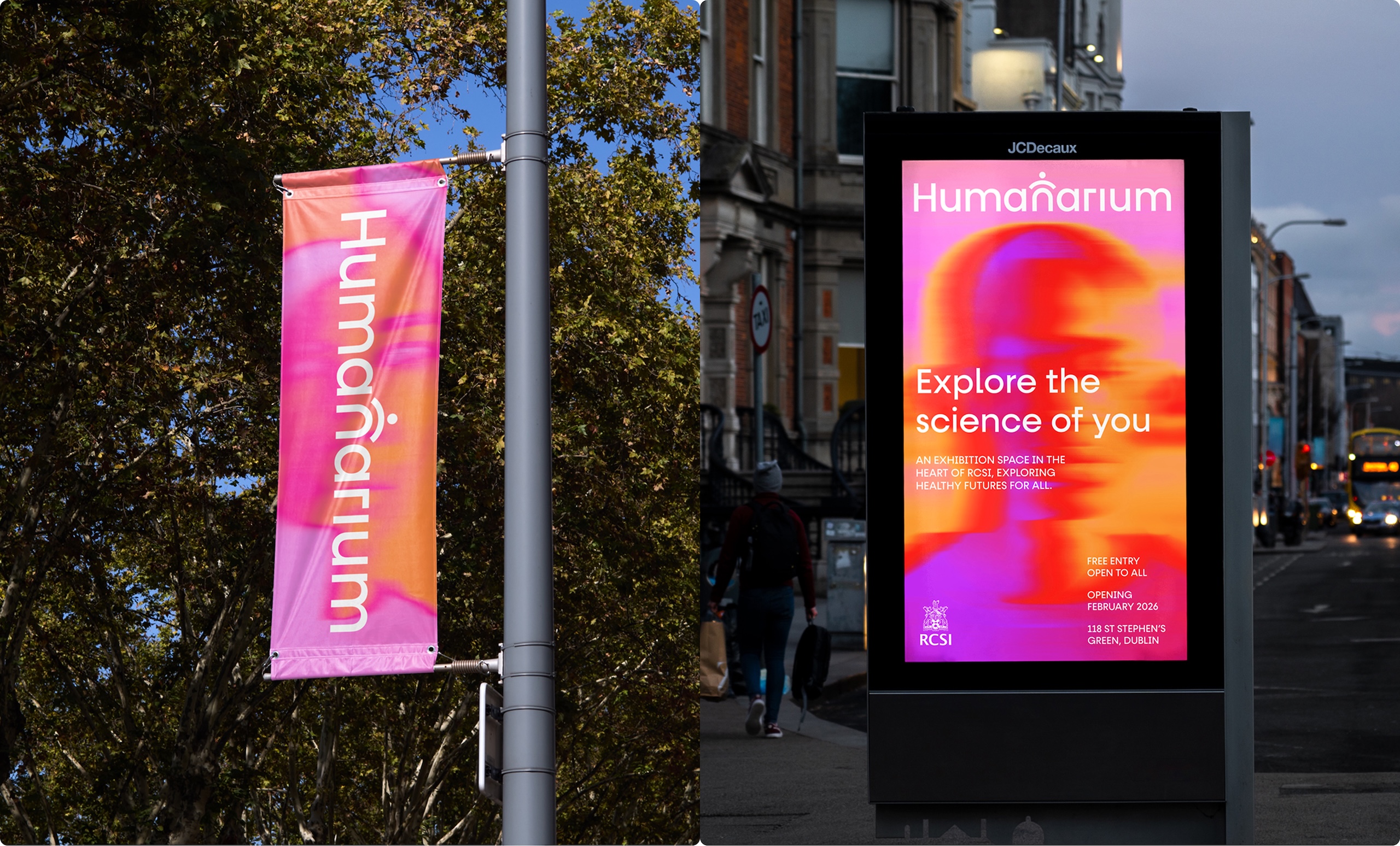 The striking colour palette, featuring bright orange and hot pink, is a deliberate departure from the RCSI’s well-known red and white branding, which Boyle explains “speaks to the long tradition of medical history.”