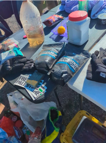 Their alleged plot included spray painting upside-down triangles—a symbol Hamas uses to denote Israeli targets—near the buildings they planned to bomb. A search of Carroll's residence also uncovered posters with Hamas triangles seen on TILF's Instagram page, which have also appeared at the group's protests, and a photograph of the group's bomb-making stations included "Free Palestine" stickers.