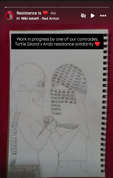TILF, which is named after an indigenous term for North America, has also expressed support for "Arab resistance" and has appeared at protests displaying signs reading "Israel has the right to go to hell." Other slogans promoted by the group include "Free Palestine or scorch the earth." The group has also called for "Death to ICE," and "Death to America."