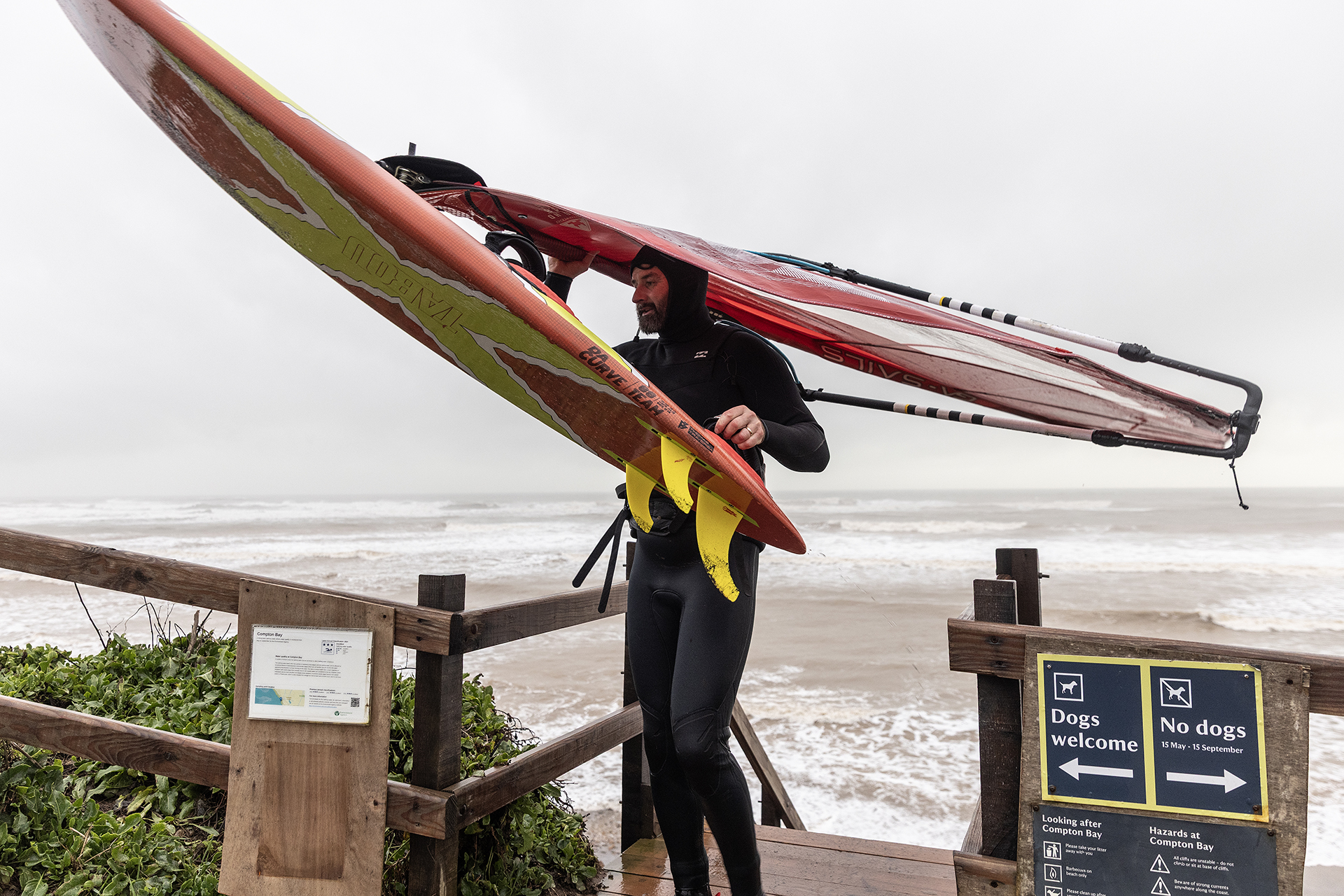 Friday morning started exactly as promised. Sunshine gave way to a thick blanket of mizzle and low cloud as I headed west…hardly photographer-friendly, but at least the forecast was behaving. Timo rolled off the ferry at Cowes at 1pm and by 1:30 he was pulling in beside me at Compton in driving rain. Ross, delayed by a school assembly (his daughter was star pupil…some moments you just can’t miss…even for potential epic windsurfing), wouldn’t be joining us until after three.