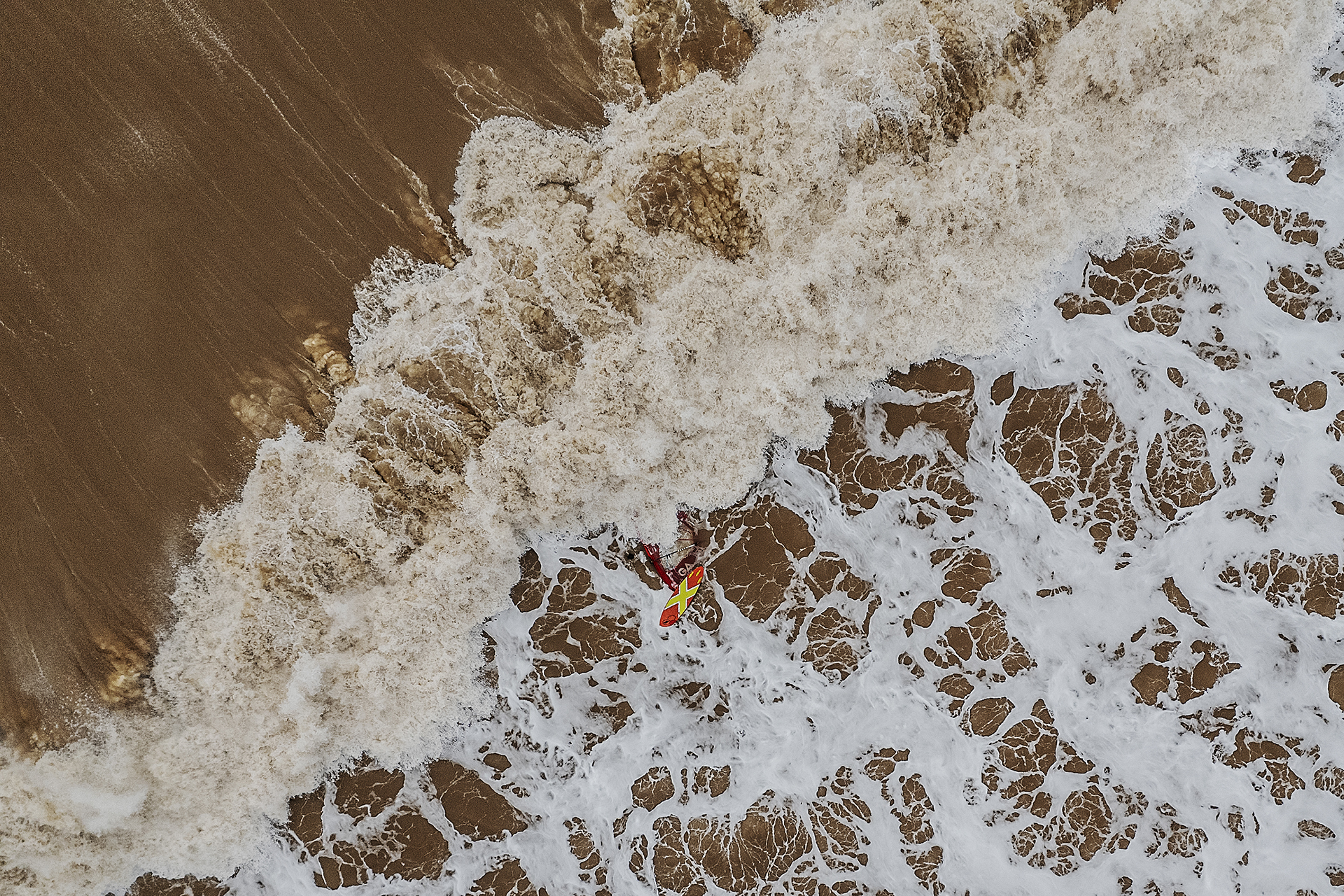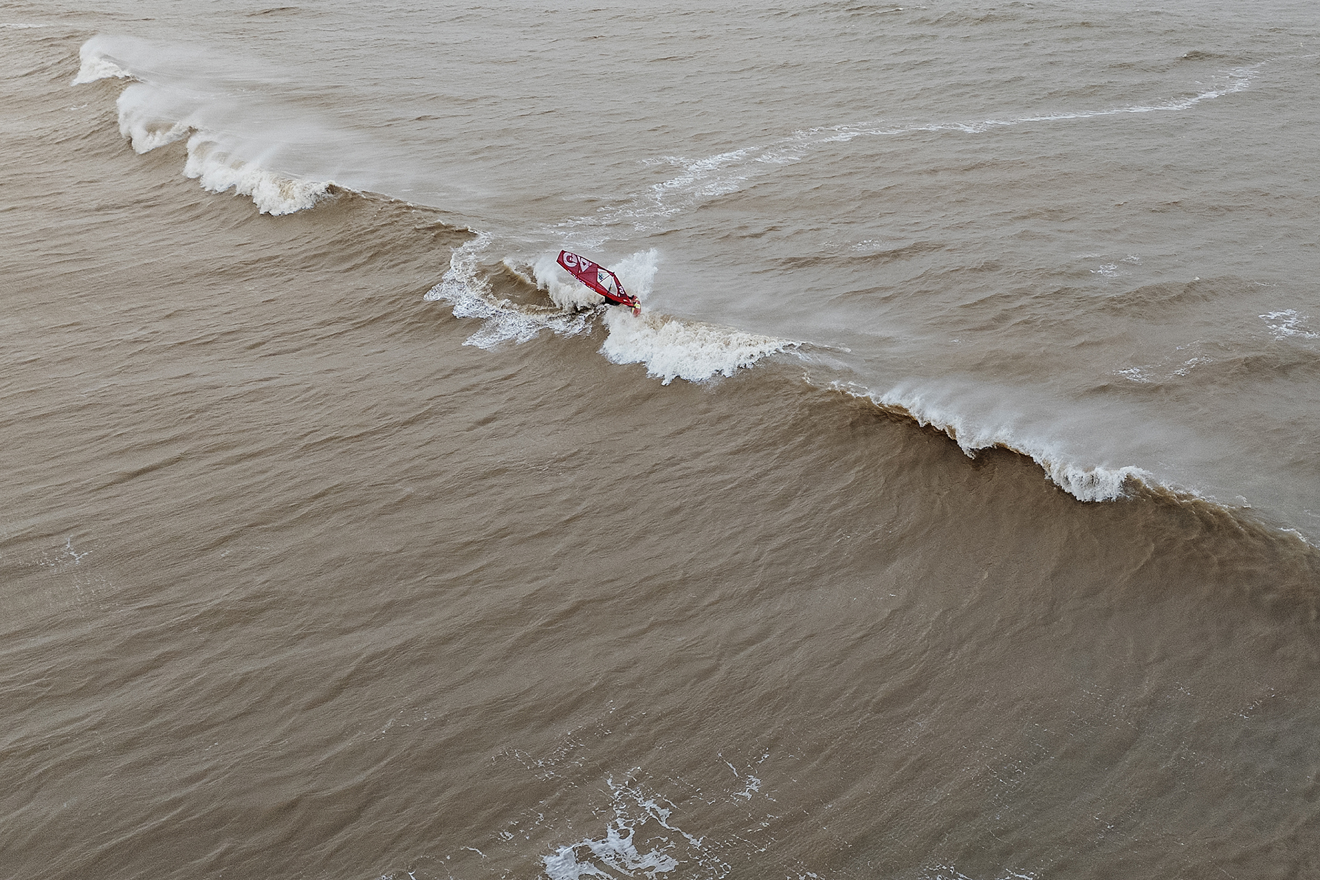 The waves were already detonating in the shallows, exploding onto the sandbar with proper intent. I wasn’t convinced there was enough wind for him to escape the impact zone, but after a couple of heart-in-mouth moments he punched through the chaos and clawed his way upwind.