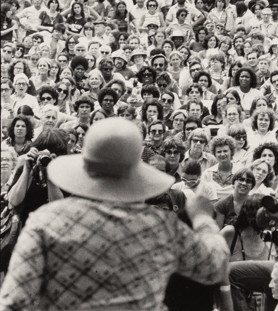 The National Women’s Conference held in 1977 started with a symbolic spectacle. Hundreds of young runners passed a torch in a relay race that stretched from Seneca Falls, New York—the site of a historic women’s rights conference in 1848—to Houston, Texas, where “women on the move” were about to make history. There, presiding officer Bella Abzug, joined on stage by three First Ladies, led nearly 2000 diverse delegates elected at lead-up state and territory meetings to pass an expansive National Plan of Action delivered to President Jimmy Carter in 1978 as The Spirit of Houston report. With nearly as many reporters as elected delegates on the scene, this widely covered exercise in democracy displayed its promise and inherent tensions. Some issues considered such as disability and gay rights were ahead of the times, and others such as abortion and the Equal Rights Amendment have returned to the center of national politics.
