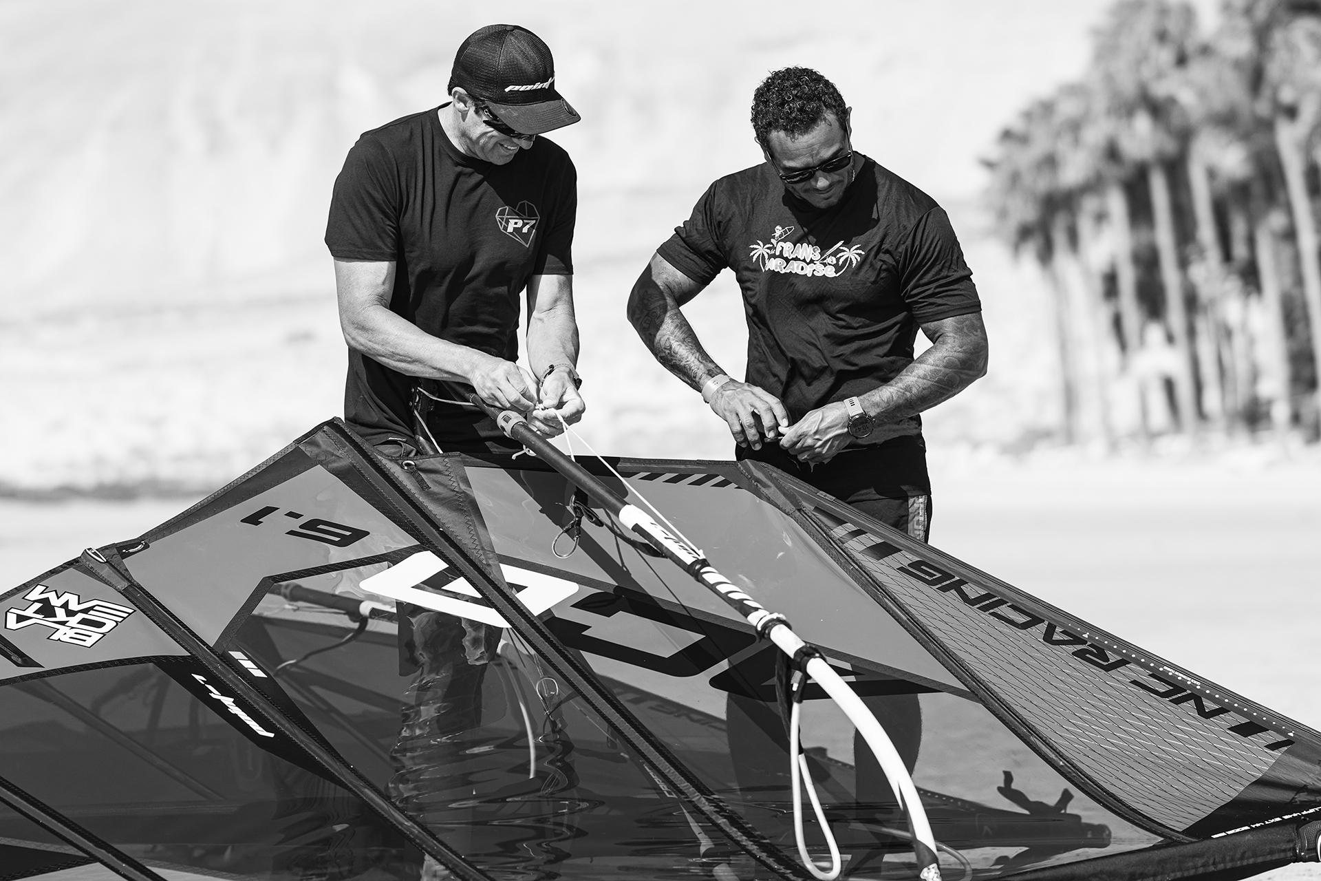 ANDREA CUCCHI: If I do not see effort, I completely lose interest and I would not give one minute of my time. That rider will not stay longer than one year on the team does not matter if they are champions or not. My team in the office and behind the scenes works without looking at the hours they do. They feel they are part of the brand and part of the project to make Point-7 the best. This is how we all work. I cannot have a team rider who gets paid and does not respect their work. The rider has to feel the same. If their priority is to do four PWA events and then disappear for the rest of the year, we have no interest. The rider should be excited to do as many events as possible because he enjoys them. He should want to promote the sport, bring fans closer to windsurfing, motivate them to improve and spend more time on the water, not just promote his own ego. If their effort is there, we are the first to give more budget, gear, technical support, more development to their feedback. In the past, personally, I gave up my racing at the event and started caddying as they deserved the extra help to go get that title they worked for. I jumped in the car and drove 2400 km to give them the chance to test the latest prototype to have them feel safe with the changes. It’s give and take. No first ladies.