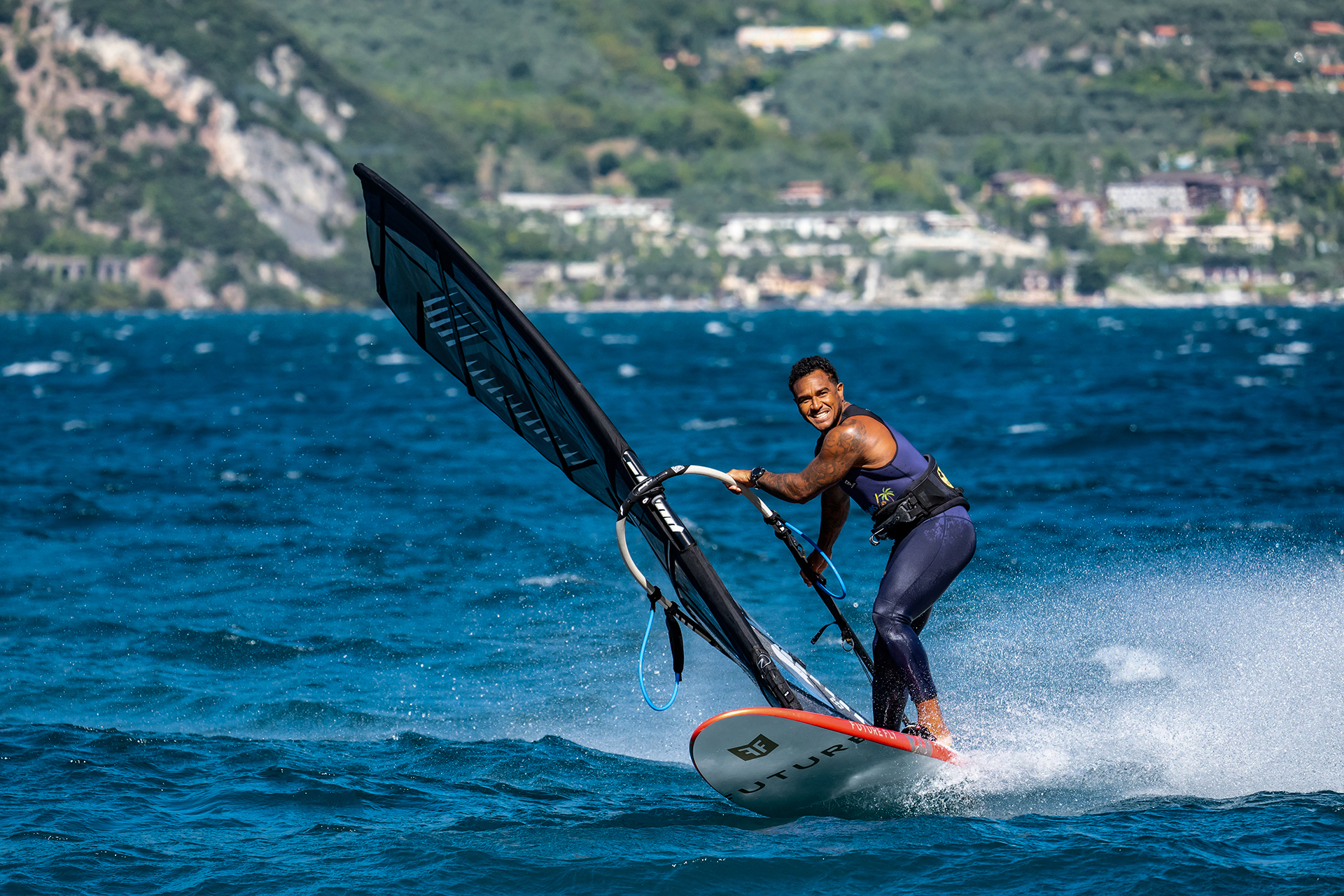 ANDREA CUCCHI: Taty Frans. He loves windsurfing. He is smiling all the time. He is having fun on the water. He cares that the gear work and is good for his clients, followers, his racing and to feel proud that his sponsors offer the best gear. Available to travel, test and race any events because he loves the windsurfing vibe and challenges no matter the level. He does not post his energy and love for the sport that gives motivation to go on the water and jibe like he does. He has his centre, he has his clients test our gear and pushes client to discover the brand.