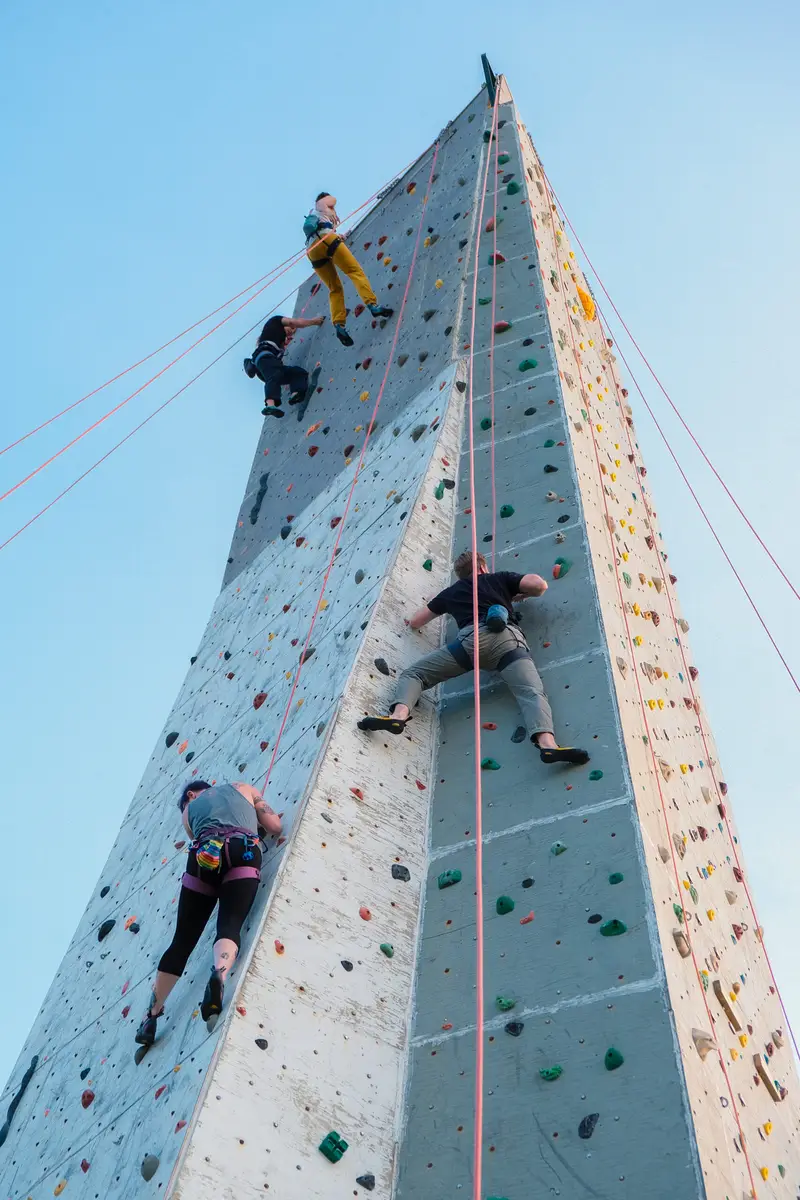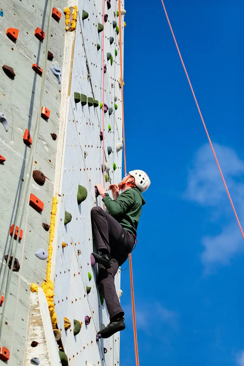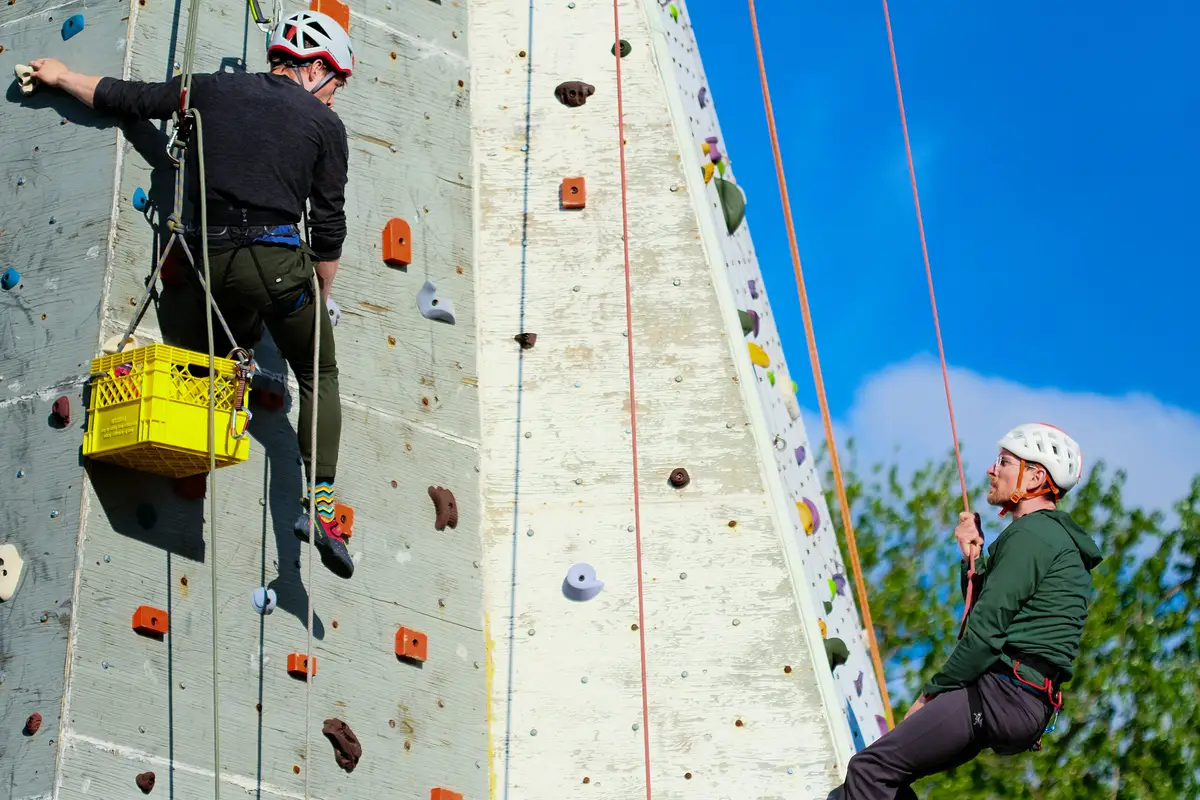Making the tower work for climbing is a year-round commitment and the job of many, many volunteers. In the spring, a team does routine maintenance on the tower and a major reset of it’s 25 routes. With sharp corners that run the entire height of the tower, it’s possible to set routes that mimic rock climbing on arêtes and dihedrals.